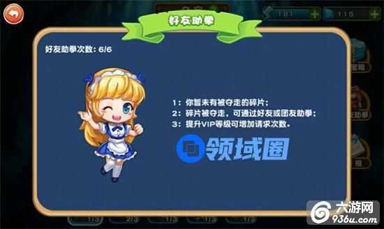 如果你的装备碎片不幸被夺走,而自己却又敌不过对手时,可以通过好友助拳抢回碎片。好友助拳初始次数上限为6次,提升VIP等级可以增加次数上限,最高可达10次。
