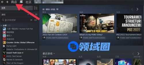 2、首先玩家们登录steam平台,然后在上方找到商店。(ps:在进入steam商店的时候一定要启动加速器,否则的话就会一直出现黑屏加载不出商店页面)