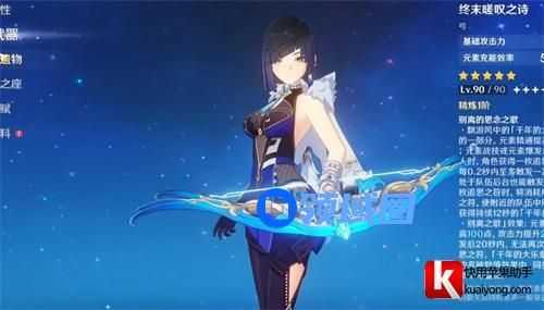 终末嗟叹之诗是九条裟罗的毕业武器,也可以说是专武,武器特效和词条非常的适合九条裟罗。并且一般九条的玩法就是辅助雷元素角色的并且大招会给雷元素角色加伤害所以比较的依赖大招的释放频率。所以比较的合适。