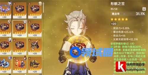 主词条:时之沙-防御/攻击。空之杯-岩元素伤害加成。理之冠-防御/元素充能效率/暴击率/暴击伤害。副词条选择:防御力>元素充能效率>暴击率>暴击伤害。
