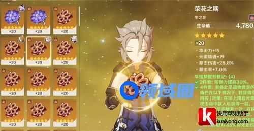 圣遗物的选择推荐带:华馆梦醒形骸记,磐岩2+华馆2.或者磐岩2+宗室2的圣遗物搭配。当然最好的选择就是华馆梦醒形骸记,因为效果会加防御和岩伤,这些都是阿贝多需要的属性。