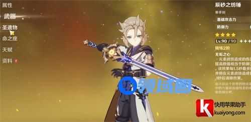 四星-辰砂之纺锤。这把武器是上一次雪山活动当中获取的免费四星武器,并且可以兑换满精。其中武器有454基础攻击力和69%的防御力加成武器特效更是高80%的防御力转换的元素战技伤害的提升。非常的适合阿贝多,但现版本已经绝版错过的玩家无法获得。
