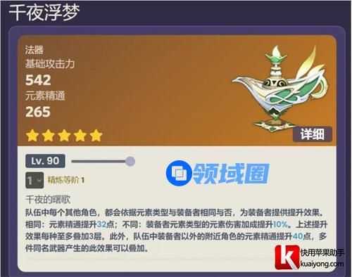 草神-纳西妲的专武叫做千夜浮梦。在外观方面和深林套(草套)的空之杯外形非常的相似,具体属性是基础攻击力542点,元素精通265点。在词条的安排上面可以看出是一把辅助类型的武器有着全游最高精通加成的武器。