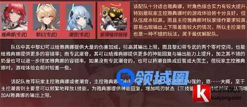 挂机玩法:雅典娜(专武)+潮音(专武)+海姆达尔或者其他角色。这个配队主要是面向那些没有黎幻的玩家,并且该配队的ai的操作有些高智商输出能力优秀推荐玩家主控潮音。其中潮音在队伍的主要还是加输出和回复效果。