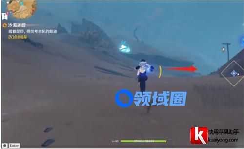 接下来转动视角面看到东南方向,有一座石洞,穿过石洞就可以看到任务指引光柱了。