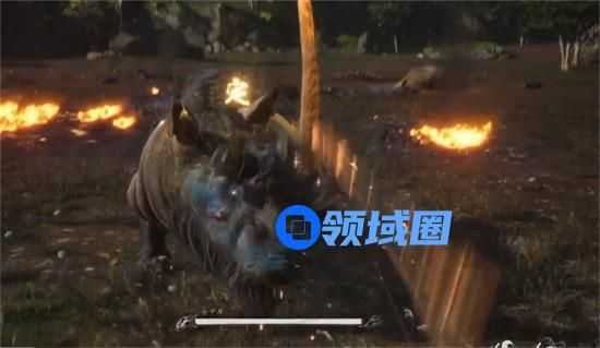 2、金甲犀会来回奔跑撞击玩家,虽然这招速度不快,但伤害较高且会将玩家撞翻在地。玩家需要保持警惕,通过侧向闪避或跳跃来躲避其冲撞攻击。