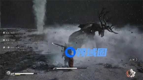 鹿角上凝结冰块进行远程攻击,此招式很容易躲,是它的远程攻击手段。