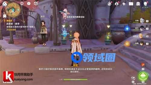 总之这个任务需要我们来到阿如村靠近npc赛芭后会自动触发,然后对话得知需要我们使用草元素攻击三盆种子施肥让它生长。施肥后对话就完成任务了。