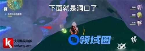 现在向下望去可以看到【洞口】的位置,只要慢慢的飞下去就到了。