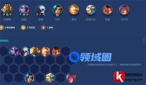 阵容组成:内瑟斯(狗头)+瑟提+卡尔玛+洛+沃利贝尔+李青+亚索+泰拉。组成6神龙3巨岩龙2怒翼的羁绊。