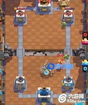 还由于他只打建筑的特性,我们可以放建筑类卡牌(如哥布林小屋,加农炮等)吸引仇恨,说实话,他那个乌龟一样的速度,碰到我塔算我输。