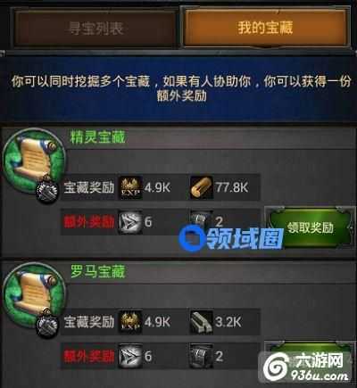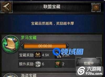 2、每个玩家每天有两次联盟宝藏的免费刷新机会,5次宝藏的免费挖掘次数