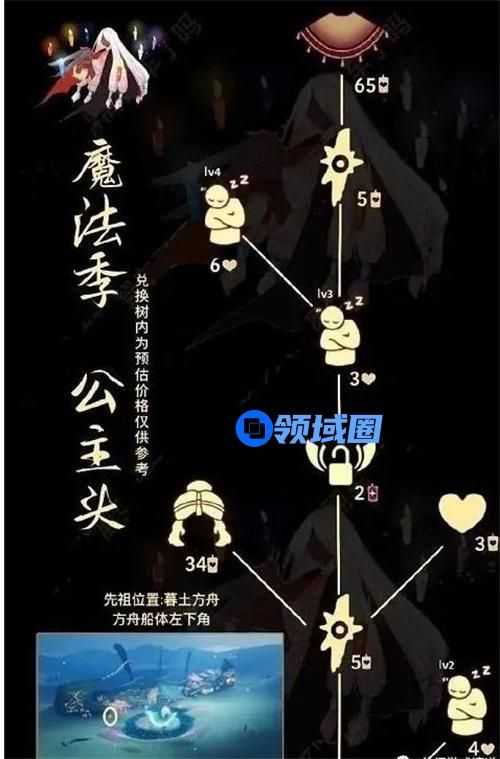 总之公主头先祖的位置是在墓土地图的失落方舟哪里,并且兑换一共需要2个大蜡烛(红蜡烛),112个普通蜡烛,13颗爱心。而且玩家可以从墓土和风行季地图的左侧风行网道两个位置千万失落的方舟