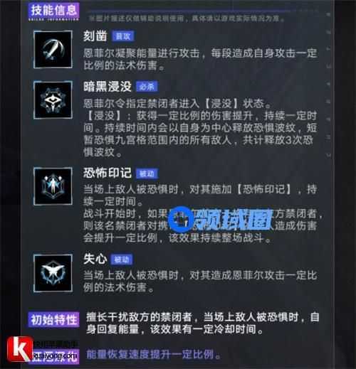 总之对于新角色恩菲尔是绝对值得抽取的角色。角色的强度非常的高,可以给队友加伤害,并且开可以攻击附加恐惧的敌人有额外的伤害效果,所以是一位非常强力的辅助角色,必抽。