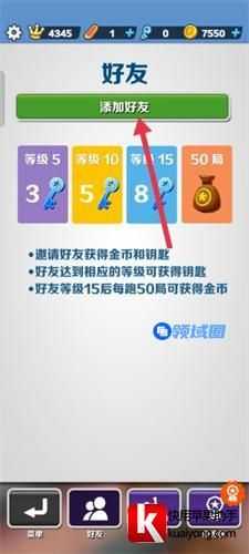 (ps:如果老玩家邀请新玩家的话可以获得相应的金币和钥匙,而且在好友达到相应的等级之后也可以获得钥匙,在达到15级之后每跑50局也可以获得相应的金币)