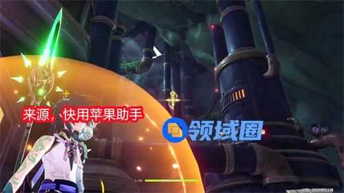 9,旋转完机关后,回头,借助四叶印飞上去,再通过管道爬上去