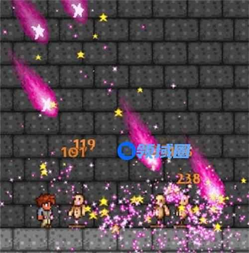 这把武器是玩家击败月亮领主掉落的武器,非常适合群秒的武器,可以称得上是地毯式轰炸武器,召唤的星辰造成的伤害是基础伤害的2倍,照明效果很好,可以用来探索地图。