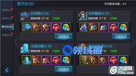 25级以上的玩家可以参与野外boss玩法,每隔半小时刷新一次,在boss玩法中选择野外boss,可以看到boss的刷新情况,选择一个适合自己当前等级的野外boss点击“立即前往”会自动寻路跑过去,每天可以完成4次野外boss任务。