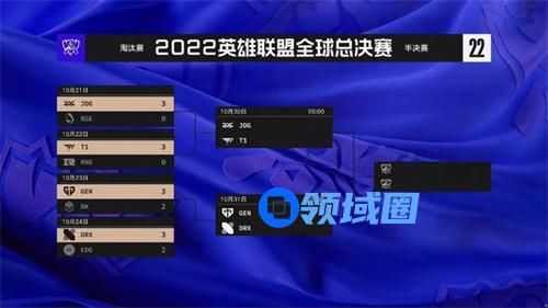 2、八强上半区胜者组:JDG和T1,下半区胜者组GEN和DRX,会在2022年10月30日-10月31日进行。