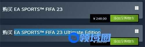 1、目前steam平台上fifa23的出售方式一共分为两种:标准版和终极版。