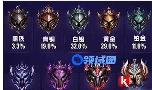 英雄联盟当中段位由低到高分别是:黑铁、青铜、白银、黄金、铂金、翡翠、钻石、大师、宗师、王者。