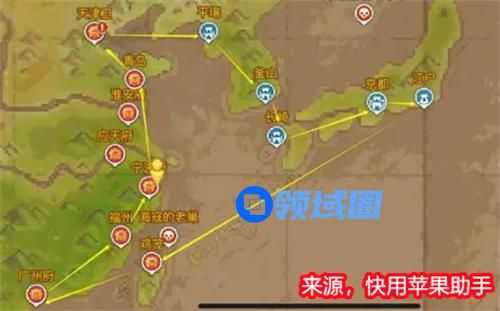 路线1:天津卫-平壤-釜山-京都-鸡笼-广州-福州-青岛,最推荐的萌新跑商路线,距离短、时间少、收益高,并且几乎遇不到海盗,可以大大缩短跑商成本和风险,提高利润。