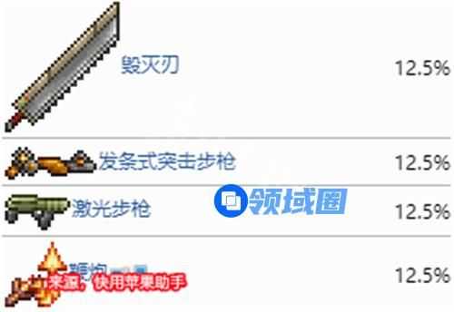 掉落道具:神锤,毁灭刃,鞭炮,发条式突击步枪,激光步枪,战士徽章,巫师徽章,游侠徽章,召唤师徽章,治疗药水,獾皮帽,血肉墙面具,血肉墙纪念章,恶魔之心,山羊骷髅头,血肉墙圣物。