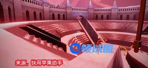 第二位。鞠躬先祖。这里需要我们在在滑冰道这里的两个路口当中选择,右边的入口,接着进入后,你可以飞到尽头来到夕阳竞技场,最后看到左右两个滑梯,在右边的楼梯这里,可以找到鞠躬先祖。