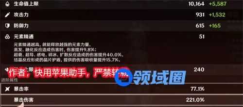 飞雷之弦振:攻击力2400+,暴击率70%+,暴击伤害220%+。