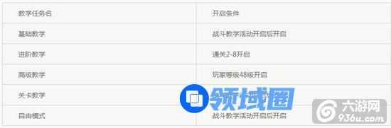 战斗教学是学习战斗技巧的活动,共分为基础教学、进阶教学、高级教学、关卡教学和自由练习5部分,除了自由练习之外其他教学首次完成后都会有丰富的奖励。战斗教学活动在普通难度关卡第二章第二关通关后开启。