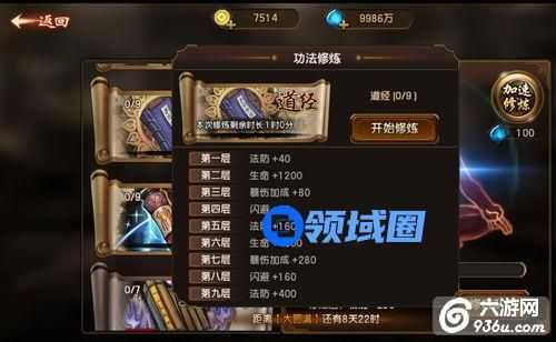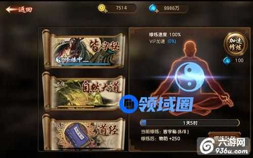 修炼功法无需任何消耗,只需要耐心的花费时间进行修炼,可花费钻石或对应VIP等级来增加修炼速度