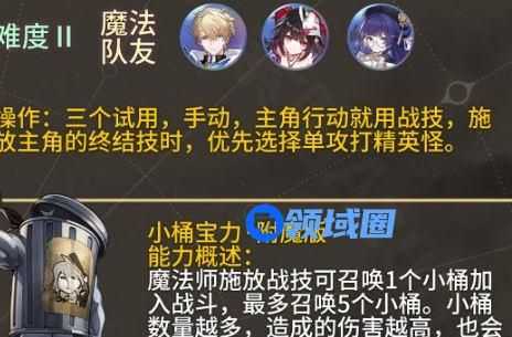 1、魔法师效果:召唤至多5个小桶加入战斗。战斗中每存在1个小桶,我方全体造成的伤害提高60%,小桶数量达到5个时额外提高100%。