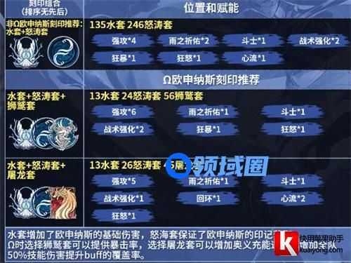 总之以上就是关于欧申纳斯的刻印选择了,如果是主打输出角色,那么推荐135水套,246怒涛套。一位因为这搭配比较的简单,并且属性的提升都是十分的稳定。