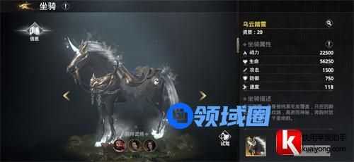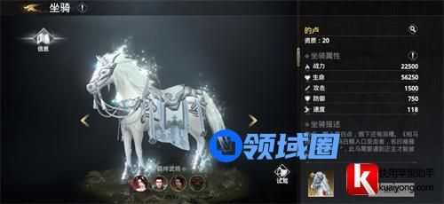 第二,赤兔。获取方式势力战争霸赛都能获得,200龙玉一组。获取难度不是很高。推荐关羽玩家必换的一个坐骑。