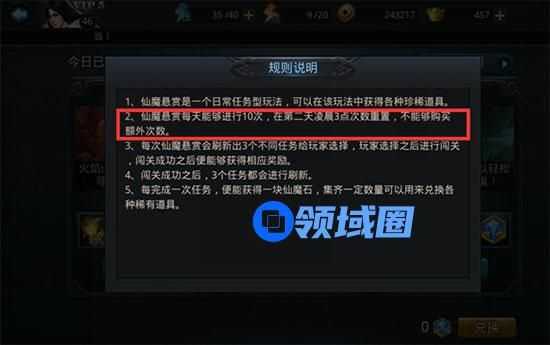 仙魔悬赏每天能够进行10次,第二天凌晨3点重置。因此时间着急的朋友在做仙魔悬赏的时候,考虑卡点连刷二十次,这样能够连保两天不需要管这个任务。