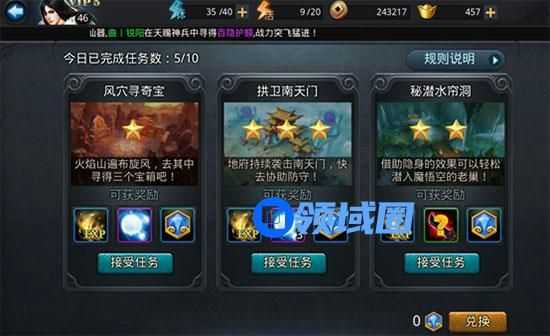 在任务面板上的三个任务,是不能刷新的,因此只能择优选择最好的奖励,或者说是最需要的奖励。对于大部分玩家来说,悬赏奖励首选顺序:通灵之魂>高级(初期绿色)装备>=经文残章>金币>其他。当然,土豪玩家只需要选择金币即可。