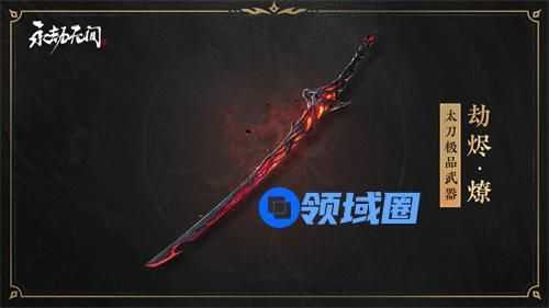 太刀极品皮肤-劫烬燎。是玩家通过完成PVE征神之路第二章的活动当中获取的,玩家可以收集材料然后兑换,具体和上次的宁红夜的极品面具是一个方式。