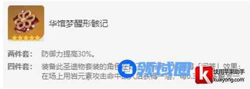 而解锁圣遗物副本后:推荐华馆2+磐岩2。磐岩两件套是提升角色的15%的岩伤,而华馆套两件是提升角色的30%的防御力,推荐先刷一套紫色的就行,由于散件比较的好筹齐,然后到后期就换为5星的华馆套就行。