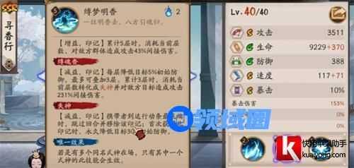 总之寻香行非常值得抽取,其中主要的就业范围就是超鬼王。技能方面是有幻境还有减益效果,并且独有的敌人跳过回合的效果,并且还有标记后的爆炸伤害非常的强,是新pve人权卡。