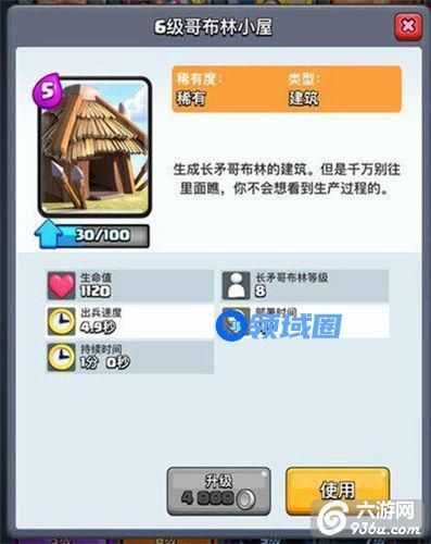 哥布林小屋是最稳定的产兵建筑,比骷髅墓碑输出能力强,比野蛮人小屋风险小,也是房子流的核心建筑,产兵速度合理,总价值收益很高,同时哥布林投矛手陆空兼顾,也是非常全面的兵种,哥布林小屋往往能够赚到费用。官方也有说明建筑生产的兵种都比同级卡牌施放的兵种稍弱一些。