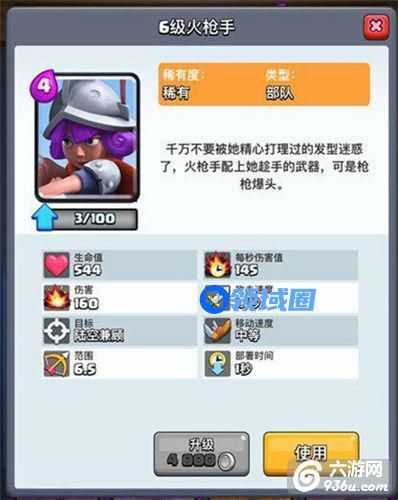 单卡应用主要是后排稳定单体输出,攻击慢速目标,保持距离输出飞行单位,射程远可以保证火枪手处在一个相对安全的输出位置,持续造成可怕的伤害,很像lol里面的adc,只要活着就可以统治战场。还有一个远程部队通用的小技巧,例如此时我方主攻右路,敌人左路施放单位偷袭,把握距离在右路施放火枪手利用射程消灭左路偷袭单位,然后参与右路战斗。