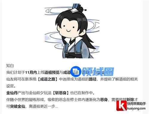 总之官方给出的时间是2022年年底会上线实装金仙境界,并且确定会在11月份更新出成道玩法和道祖的阅览。我们都知道现在就只有金仙和道祖两个境界没有上线,小编也是非常的好奇玩家成就这两个境界后到底还没有其他的境界。对此还是需要等以后才会有消息。