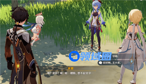 这个时候聊着聊着,甘雨就过来了,然后旅行者和派蒙不记得甘雨的名字,于是在回答选择上面就有两个选择,一个是你好啊,甘雨,而另一个是你好啊,王小美。