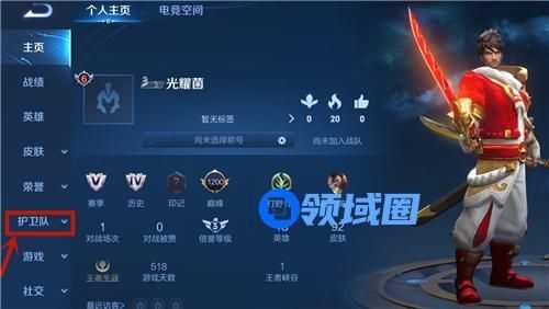 首先点击头像进入个人主页后,点击左侧的【护卫队】一项。