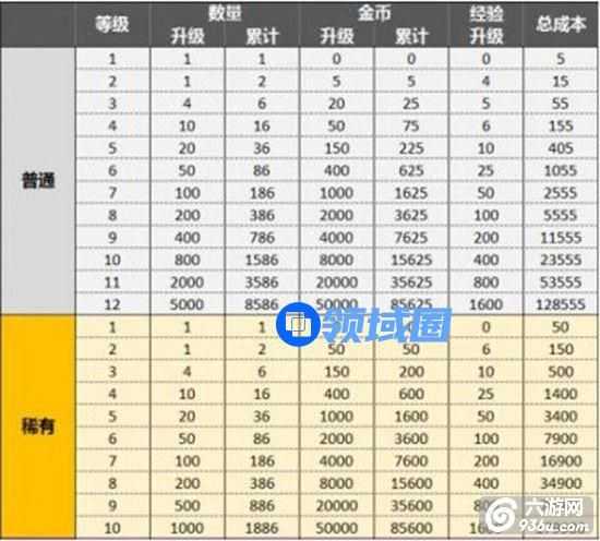 那么我们来看下白卡和橙卡升到9级和七级所需要的资源——