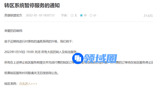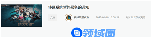 英雄联盟端游在1月10号对所有的大区转区功能进行了关闭,不少玩家也是由于自己的福星转区功能快到期了而着急使用,所有就在问2022转区系统什么时候能维护好,今天小编就给大家介绍一下,还不清楚的玩家赶紧来看看吧。
