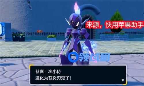总之苍炎刃鬼是紫版玩家独有的宝可梦,需要玩家使用10个【来悲茶的残片】和穴扎镇的老太太兑换专属的进化道具【暗咒之铠】后使用道具进化的哦。这里如果是闪光炭小侍那么进化后就是闪光苍炎刃鬼了。