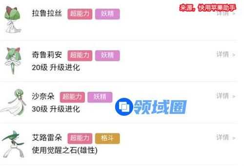 进化方法:雄性的拉鲁拉斯进化为-奇鲁莉安后使用【觉醒之石】就会进化为艾路雷朵。