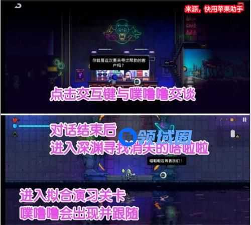 2、你将在boss关前遇到嗒啦啦,与嗒啦啦对话结束后击败boss,回到大厅