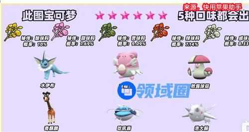 下面是具体的全秘传调味料不同宝可梦不同口味掉落一览